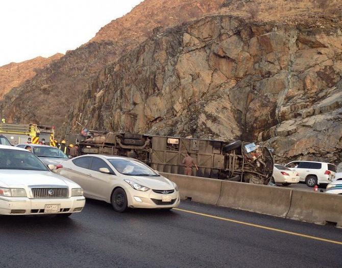 الوطن العربي > إصابة ثمانية أشخاص إثر حادث انقلاب حافلة بطريق السيل الطائف