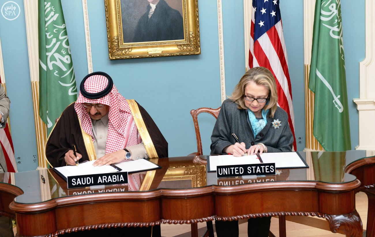 واستعرض – رعاه الله – مع معالي وزير الخارجية الأمريكي جون كيري علاقات التعاون الثنائية التاريخية بين المملكة العربية السعودية والولايات المتحدة الأمريكية.