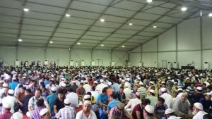 لحظات انتظار الاذان المخيم من الخارج نواجد عدد من الجاليات المسلمة يشهدها المخيم