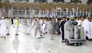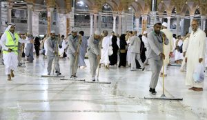 جندت إدارة النظافة والفرش بالمسجد الحرام التابعة للرئاسة العامة لشؤون المسجد الحرام والمسجد النبوي كامل طاقاتها لخدمة بيت الله الحرام وقاصديه من زوار ومعتمرين خلال شهر رمضان المبارك، ليتحقق لهم أداء مناسكهم بكل يسر وسهولة وطمأنينة، بحرص ومتابعة مستمرة من معالي الرئيس العام لشؤون المسجد الحرام والمسجد النبوي الشيخ الدكتور عبدالرحمن بن عبدالعزيز السديس ومعالي نائبه لشؤون المسجد الحرام الشيخ الدكتور محمد بن ناصر الخزيم.