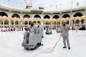 وأشار إلى أن عدد الموظفين الرسميين يصل الى (133) موظفاً رسمياً وعدد (220) موظفاً مؤقتاً، ويبلغ عدد العمالة (2200)عامل وعاملة يعملون على مدار (24) ساعة لخدمة المسجد الحرام والعناية به، وتم تأمين ما يقارب (25000) ألف سجادة، و(1500) حاوية نفايات كبيرة، و (1100) حاوية نفايات صغيرة.