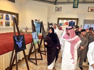 واستمع التركي من الفنان العالمي محمد العبلان إلى شرح عن المدارس الفنية والمشاركين والمشاركات مؤكدًا أن كل فنان وفنانة لدية لمسة فنية إبداعية وأن المشاركين كانوا من مختلف مناطق المملكة .