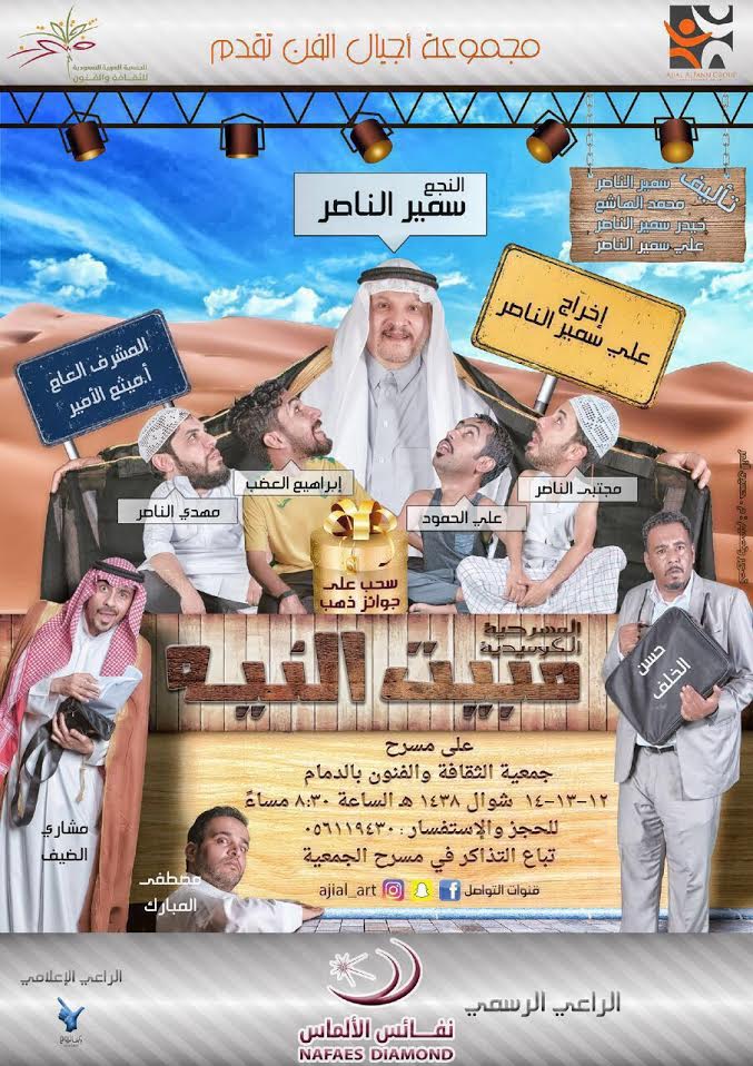 على خشبة مسرح فرع جمعية الثقافة والفنون بالدمام تقدم”أجيال الفن”العرض المسرحي الكوميدي ” مبيت النيه” وذلك اعتباراً من مساء اليوم الخميس وحتى مساء السبت المقبل الموافق 12-13-14من شهر شوال الجاري 1438 في تمام الساعه “الثامنه والنصف” مساءاً المسرحية من بطولة النجم سمير الناصر وبمشاركة مجموعة من الممثلين الصاعدين مهدي الناصر – مجتبى الناصر – حسن الخلف -مشاري الضيف – علي الحمود – إبراهيم العضب – مصطفى المبارك .